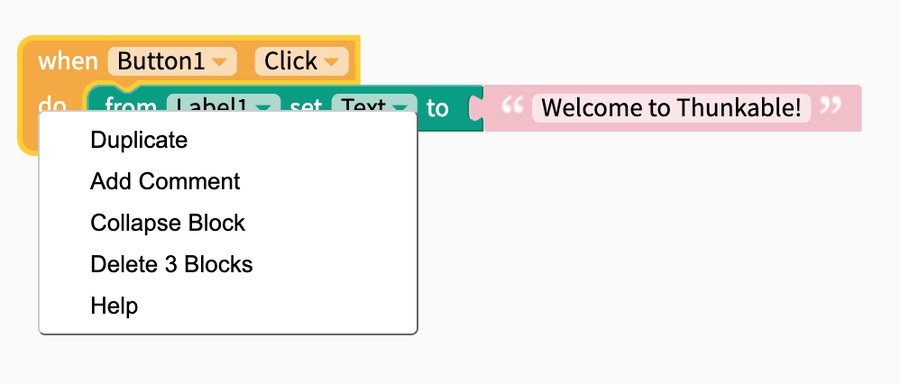This is where Thunkable blocks come in. Thunkable blocks are the building blocks of a great experience for your app users. Every component has its own set of blocks to start or trigger an event and set and change properties.