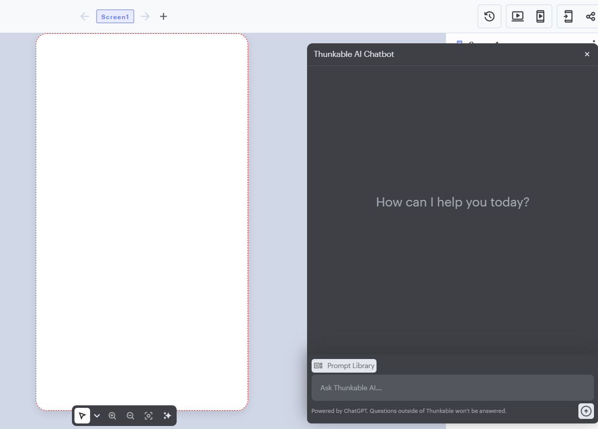 The AI Chatbot, powered by ChatGPT, can answer questions related to app development, Thunkable blocks, and general platform usage.