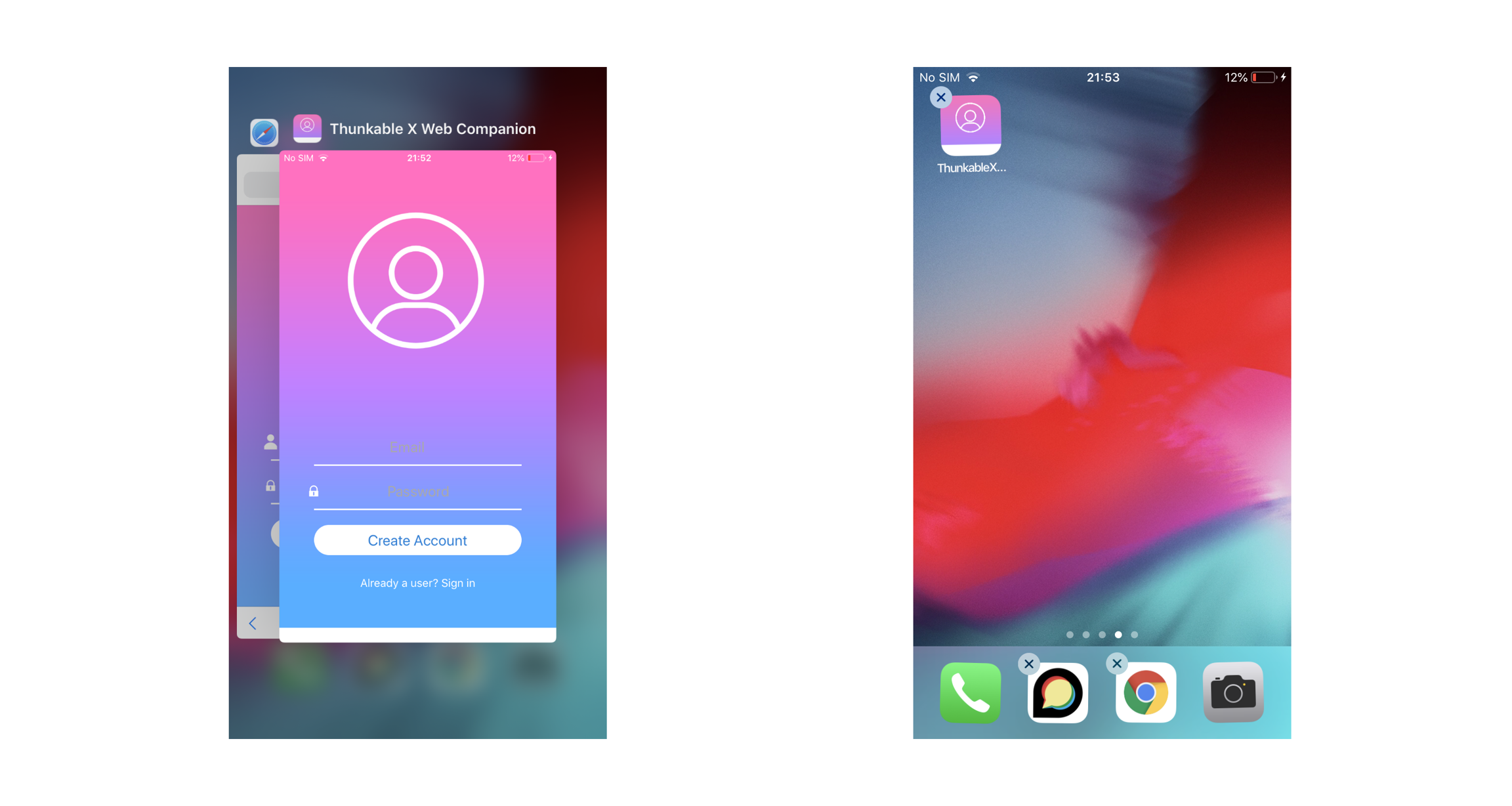 If you exit out of your browser you will see that a new icon has been added to your home screen. You app has the same name and same icon as your Thunkable project.